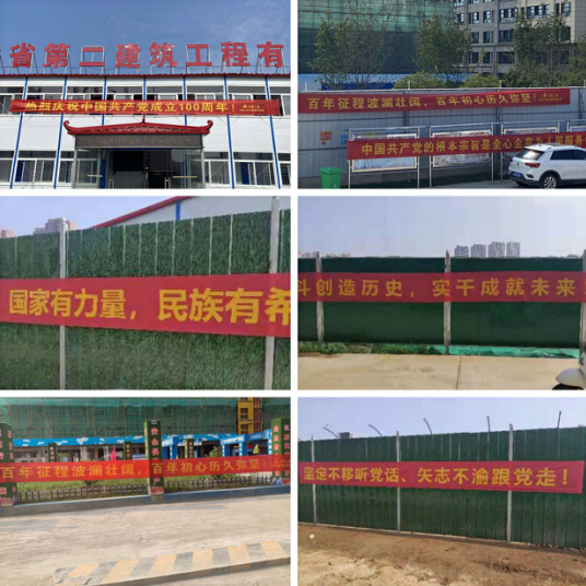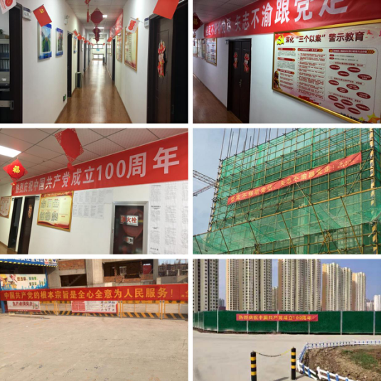 鑄就百年輝煌,書寫千秋偉業。為迎接中國共產黨成立100周年,六分公司機關及所屬項目部紛紛懸掛張貼了有關慶祝中國共產黨成立100周年的標語,營造濃厚的宣傳氛圍,把黨史學習教育進一步推向深入,大力營造“黨的盛典、人民的節日”濃厚氛圍,充分展示中國共產黨百年光輝歷程、偉大成就和寶貴經驗,全面營造濃厚氛圍, 共慶黨的百年華誕,大力唱響共產黨好、社會主義好,改革開放好、偉大祖國好、各族人民好的時代主旋律。