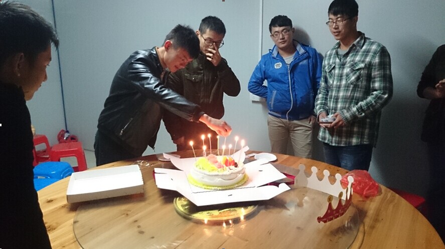 “祝你生日快樂!祝你生日快樂!”“許個愿吧”;“謝謝大家,謝謝楊經理及大家的關心,沒想到在外地還能過上這么溫馨的生日,真的令我很感動”,李森激動的說。11月11日,伴隨著”生日快樂“的樂曲,安建.龍溪山莊項目部員工李森許下了美好的愿望并吹滅了蠟燭。這是宿松安建龍溪山莊項目部一個動人的場景。