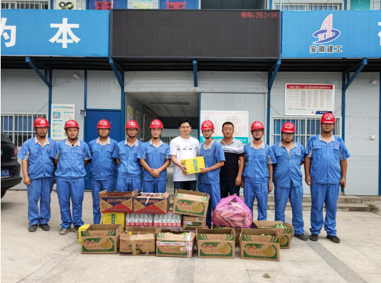 驕陽似火,酷暑難當。隨著聒噪的蟬鳴,又迎來了今年的高溫季節。自7月中旬,公司啟動“關愛一線、夏送清涼”慰問一線活動以來,六分公司領導班子先后走進文一·春風里、文一·錦門繁華里等項目部開展慰問活動。慰問期間,每到一處,不僅為一線職工送上礦泉水、毛巾、花露水、綠豆、藿香正氣水、防暑藥品等慰問品,還深入到項目施工現場,與職工親切交談,要求項目部做好高溫防暑工作,靈活安排作息時間,落實高溫天氣作業安全防范措施,切實做好當前防暑降溫工作,防止發生中暑事件,確保人身安全。