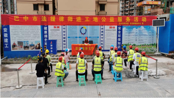 8月7日下午,四川巴中市司法局、市法律援助中心組成的公共法律服務(wù)志愿隊,在安徽二建一分公司半山逸城二期項目開展法制宣傳教育活動。