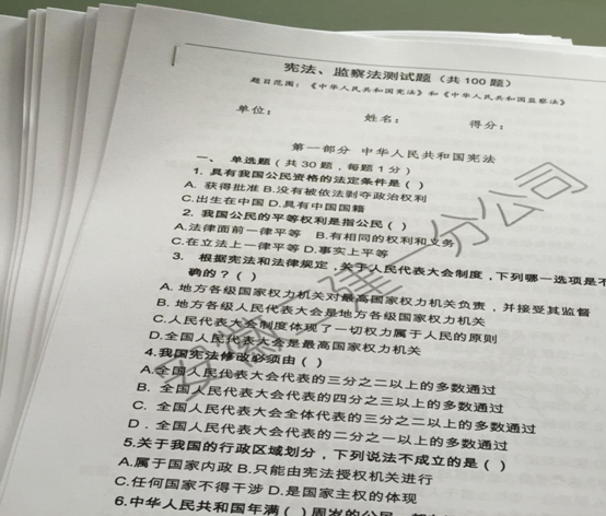 為維護(hù)憲法權(quán)威,貫徹落實(shí)監(jiān)察法,5月11日,一分公司組織開(kāi)展領(lǐng)導(dǎo)班子、科室負(fù)責(zé)人、項(xiàng)目經(jīng)理兩法學(xué)習(xí)專題活動(dòng)。支部書(shū)記倪海霞針對(duì)5月9日在分公司QQ群中分享的電子檔“兩法”文件,結(jié)合分公司工作實(shí)際與參會(huì)人員一起研讀學(xué)習(xí)中華人民共和國(guó)憲法、中華人民共和國(guó)監(jiān)察法,暢談學(xué)習(xí)心得體會(huì),努力營(yíng)造學(xué)習(xí)宣貫兩法的濃厚氛圍,讓兩法精神深入人心。會(huì)后,分公司對(duì)參會(huì)人員進(jìn)行試卷考核,更讓大家牢固樹(shù)立法律紅線不能觸碰、法律底線不能逾越的觀念。