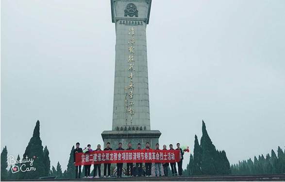 為了紀(jì)念這個(gè)有著深遠(yuǎn)意義的日子,弘揚(yáng)愛國主義精神,進(jìn)行愛國主義和黨團(tuán)員教育活動(dòng), 4月5日,淮北雙龍雅舍項(xiàng)目部全體員工在項(xiàng)目經(jīng)理盧因東的組織下,到“淮海戰(zhàn)役雙堆集烈士陵園”開展清明節(jié)祭奠革命烈士活動(dòng),重溫歷史,緬懷長眠在這里的革命烈士,寄托哀思。